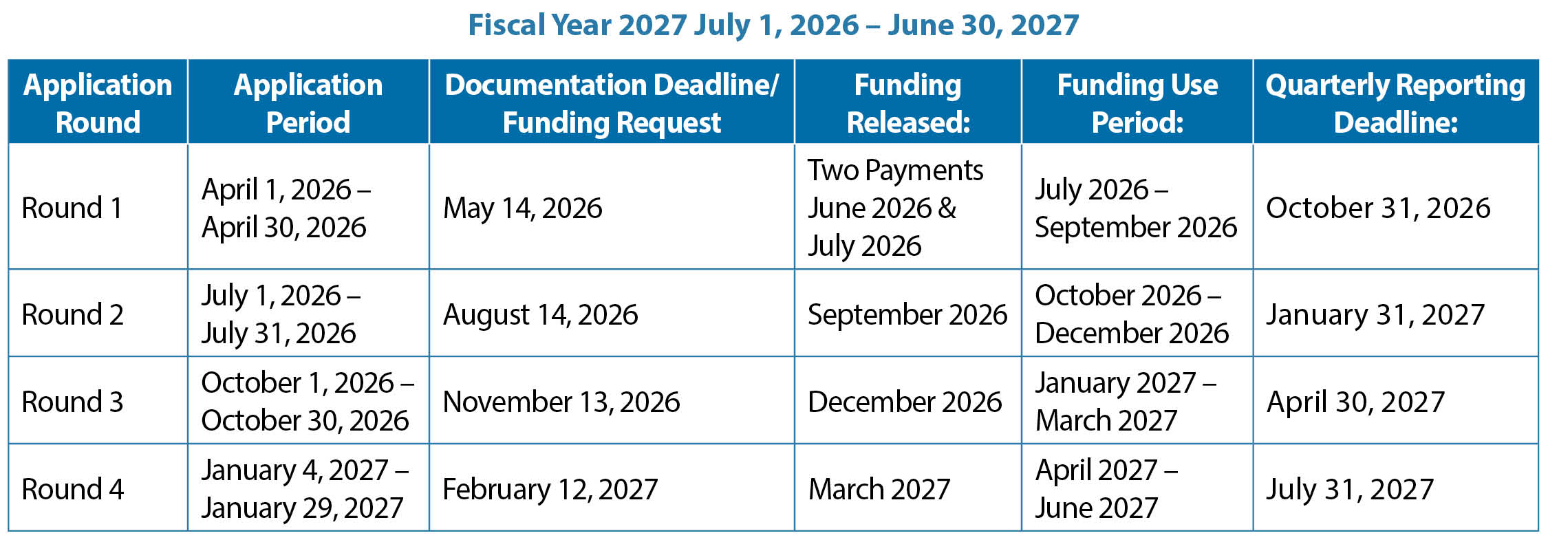 Fiscal Year 2027 Grant Schedule: